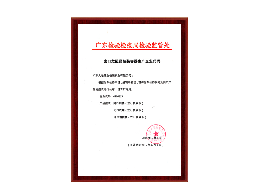 • 出口危險(xiǎn)品包裝容器生產(chǎn)企業(yè)